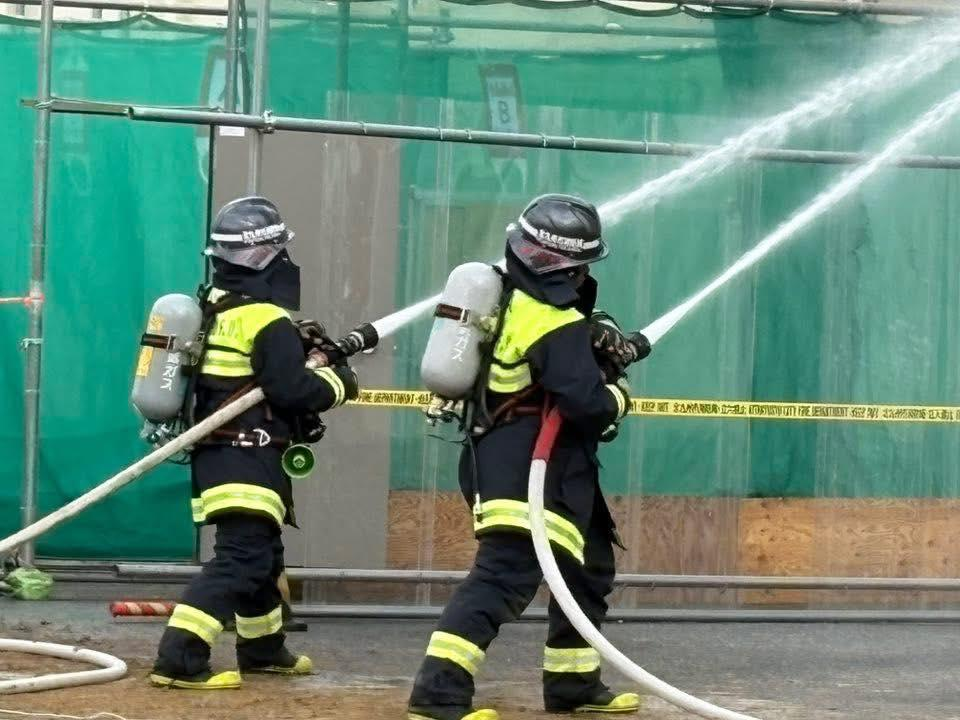 研修では、実際の訓練施設を使いながら、消火活動や救助の方法、組織的な対応の仕組みなどを実践的に学びます。