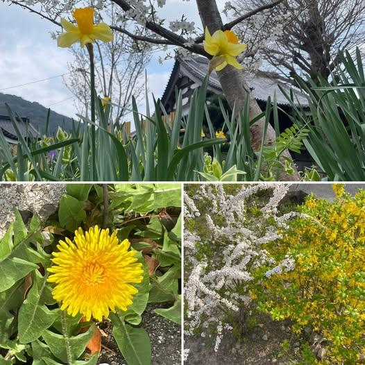 タンポポや、白いコデマリの花、黄色いレンギョウの花などが訪れる人たちの目を楽しませてくれます。