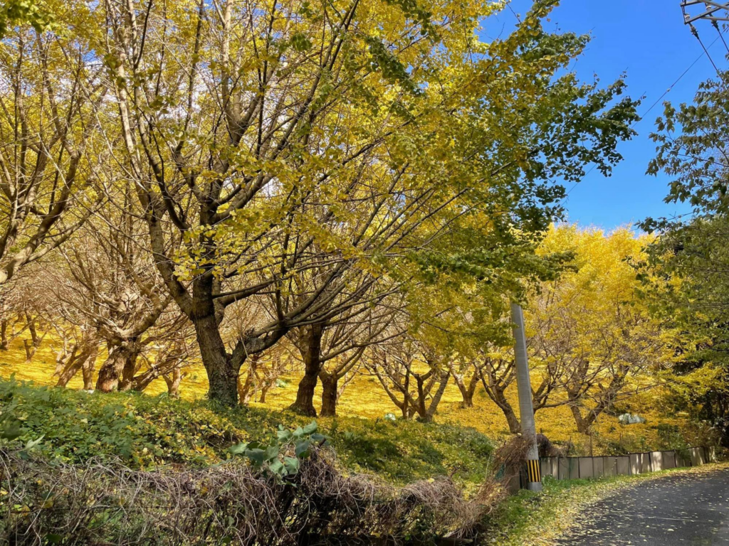河内藤園近くの銀杏畑で、何本もの銀杏が植えられています。
