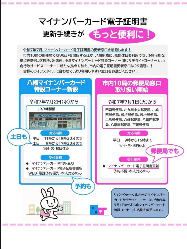 働いていると、なかなか役所へも行けず、わざわざ休みを取って、更新に行かなくちゃいけないのか、と思っている北九州市民の方へ朗報です!