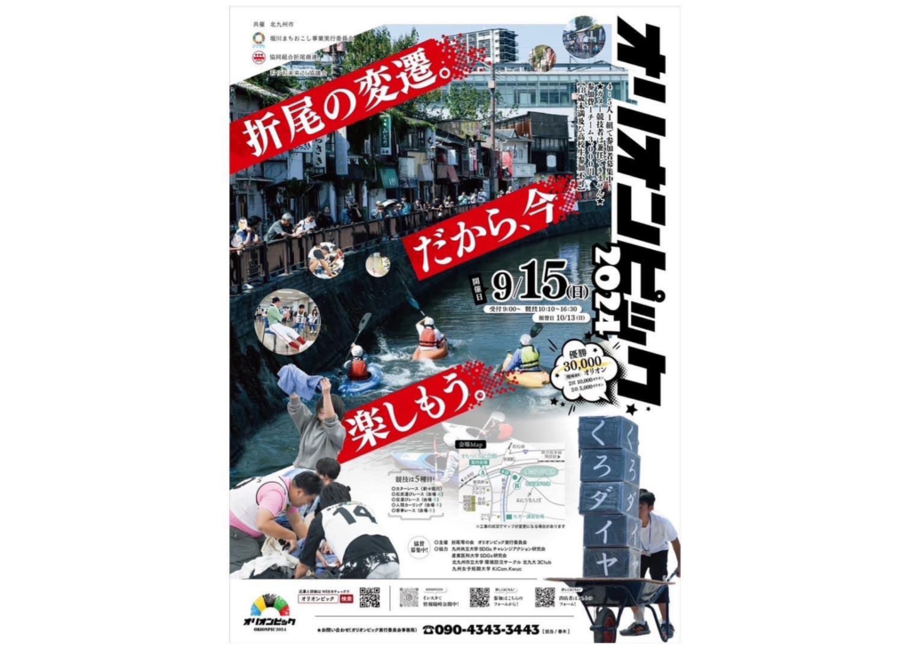 競技は、「折尾近代五種」と呼ばれる5種目で競い合い、総合得点1位のチームに地域通貨30,000オリオン(通常は、ボランティアをしないと貰えない地域通貨)が渡されます。