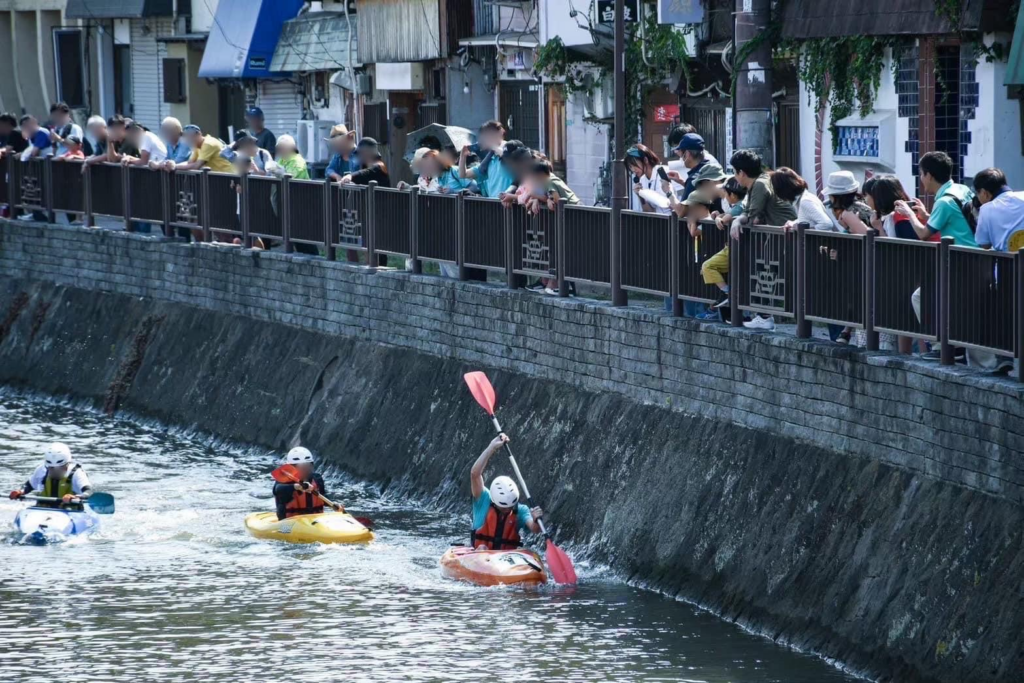 川岸にたくさんの応援!一番盛り上がる【堀川カヌーレース】