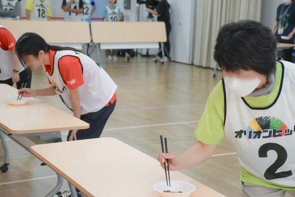 屋内、まちづくり記念館では、【豆運びレース】