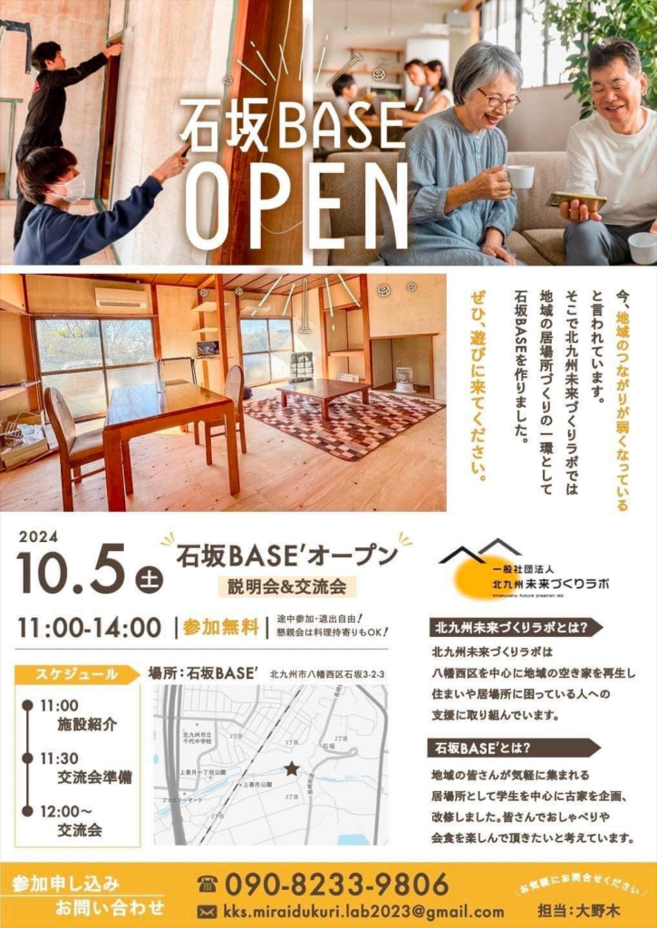 皆さん、10月5日はぜひ、石坂BASE‘へお越しください。