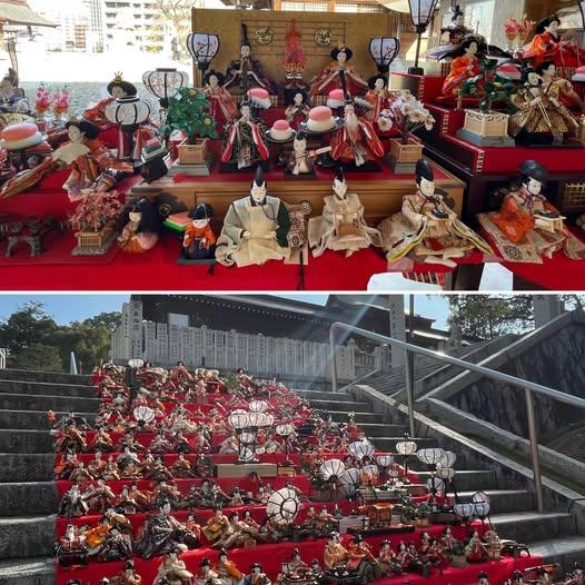 (雨天時は階段に飾られたひな人形は、撤去されます)