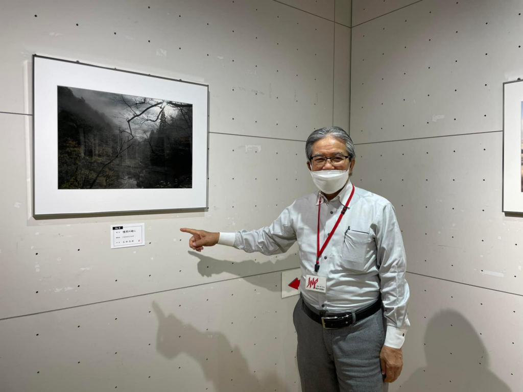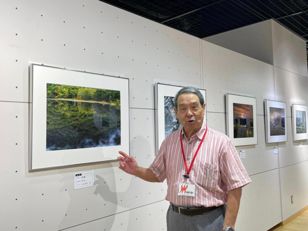 ご自身が撮影した写真の前で、社会貢献について語っていただいた、支部長の髙田尚雄さん