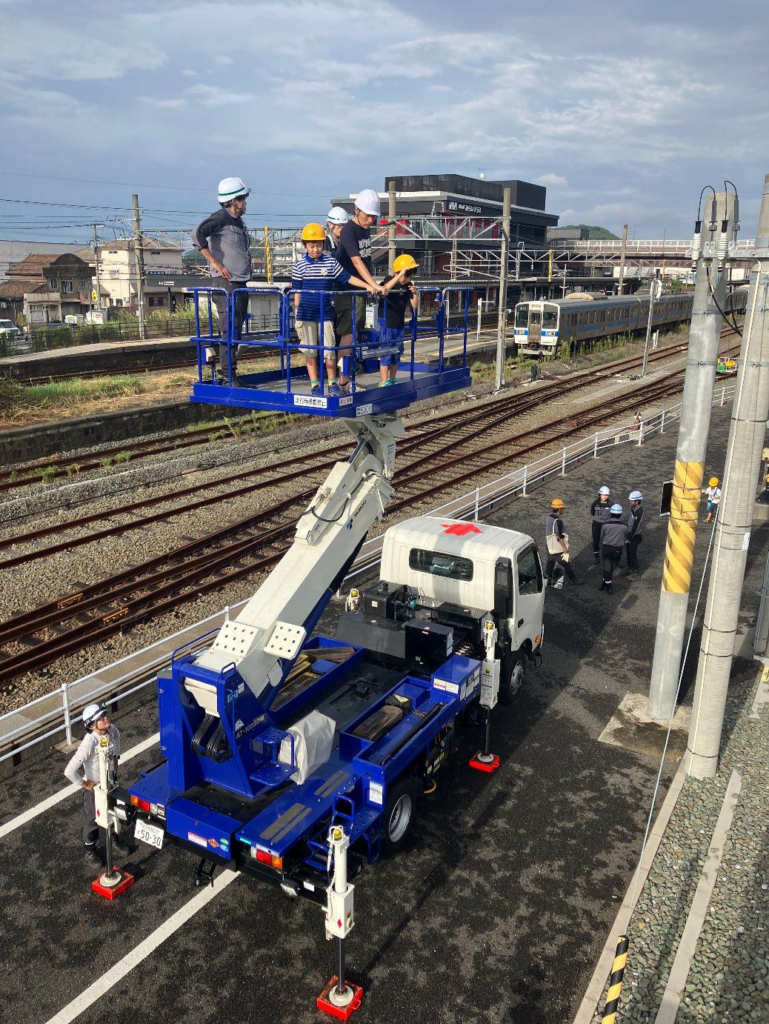 通常は乗ることができない高所作業車に乗って高い場所から線路を見下ろして見える風景は格別なものにちがいありません。