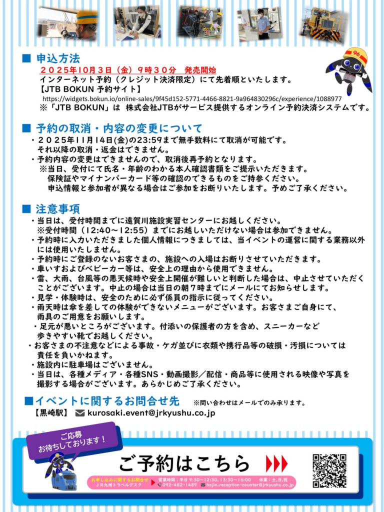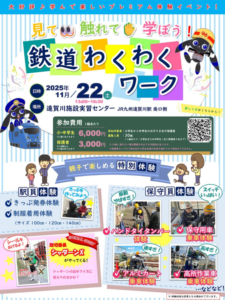 企画・運営は黒崎駅・折尾駅・折尾工務所の北九州市内の事業所で仕事をしているメンバーが、場所を遠賀川駅横の実習施設を借りて開催するもので、今年で3回目を迎えます。