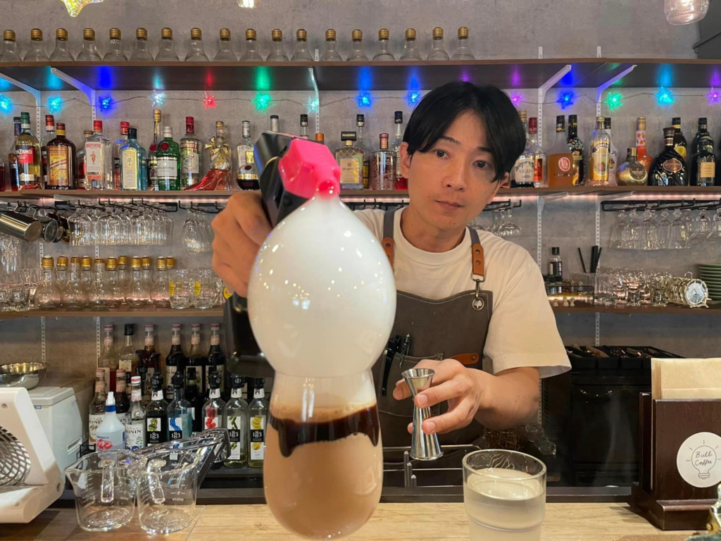 オーナーの手で完成するバブルミルク。