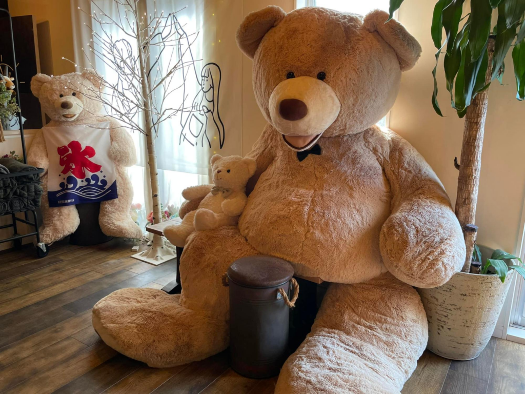店内の片隅にはくま3(くまさん)。図書館カフェのくまも、ここにいたそうです。