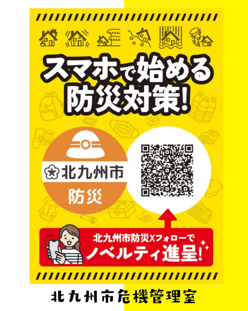 北九州市危機管理室はスマホで始める防災対策が行われ、SNSフォローで特典もあるようなので、興味がある方は、この機会にぜひ!