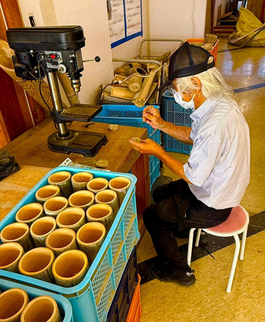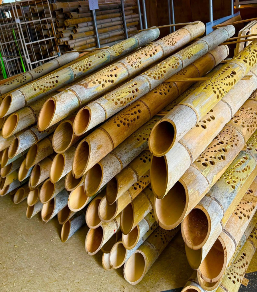 ひとつひとつの竹に穴を開ける作業は本当に大変そうです。