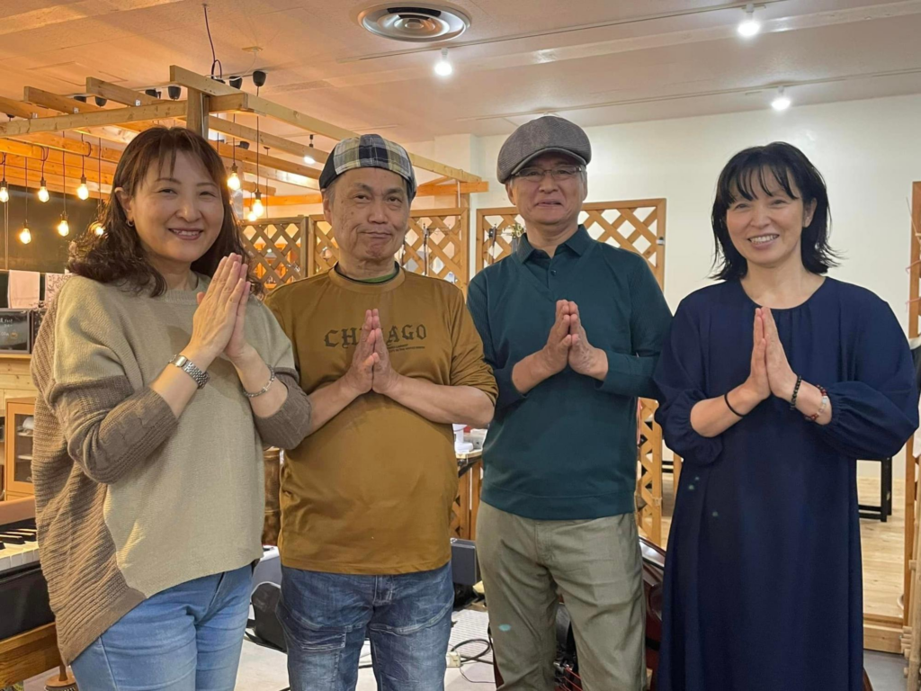 左から ピアノKumicoさん 打楽器 taka-Gさん ベース 大場哲郎さん 歌 Naomiさん