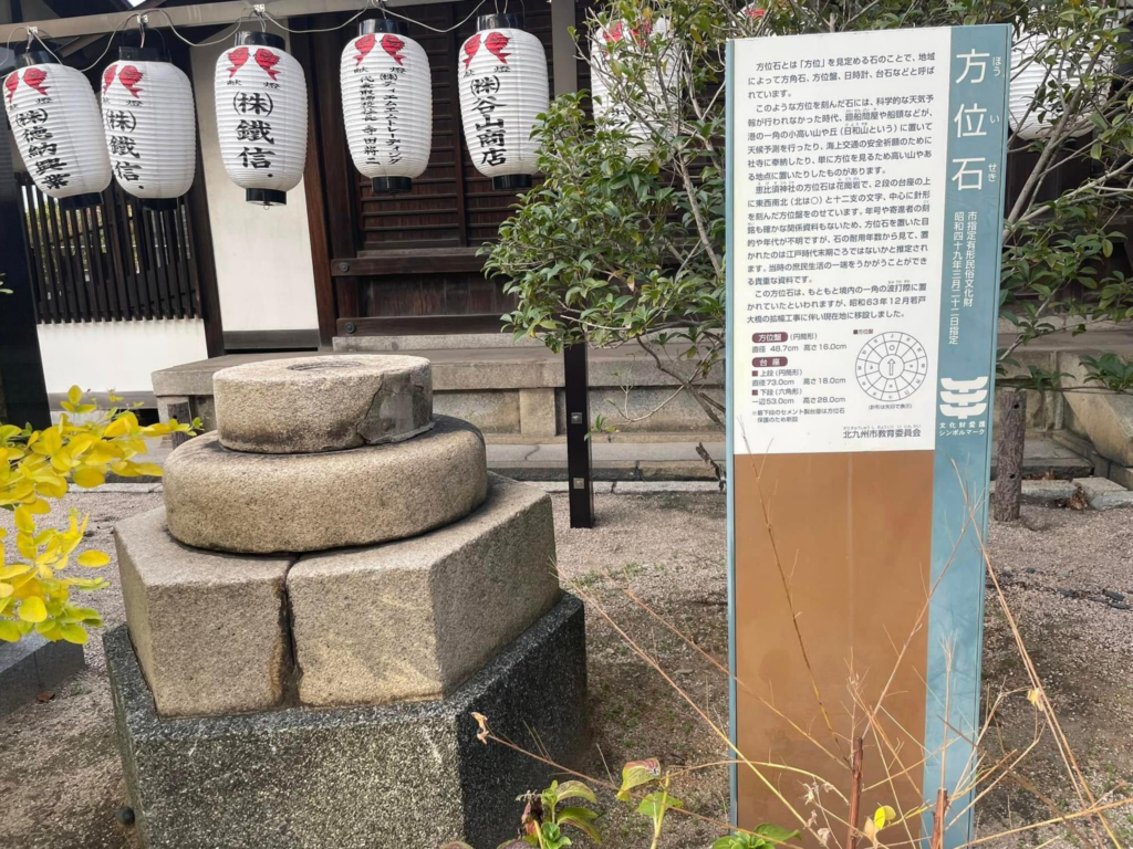 「方位石」とは方位を見定めるための石で、科学的な天気予報が行われなかった時代に、港の一角の小高い山に置いて天気予測を行ったり、海上交通安全祈願のために社寺に奉納したり、単に方角を見るために設置されたりしたものです。