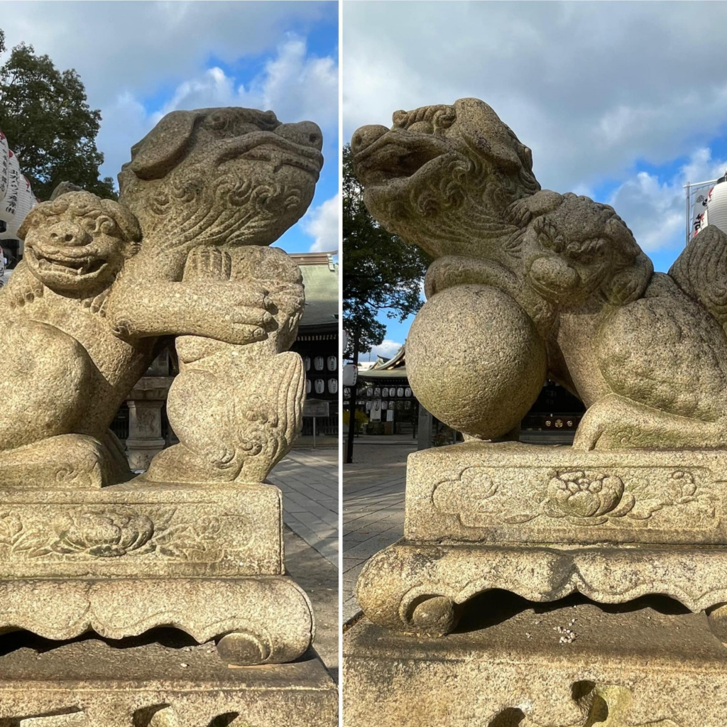 阿吽の狛犬。右:阿形(あぎょう)左:吽形(うんぎょう)