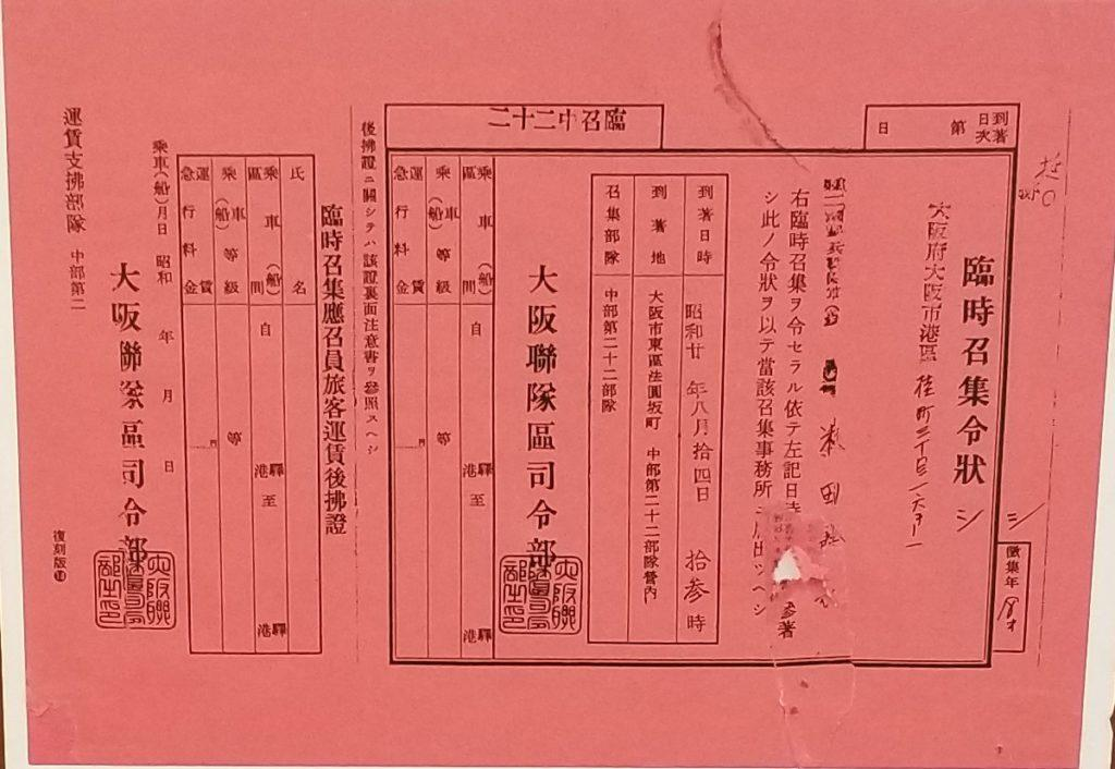 なかでも印象的なのが、赤紙(召集令状)の展示です。